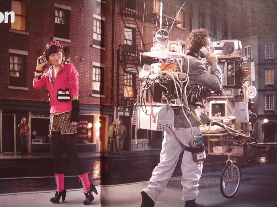 这是2007年的iPhone广告,一部智能手机,囊括了右边这个人身上背的这么多设备的功能: