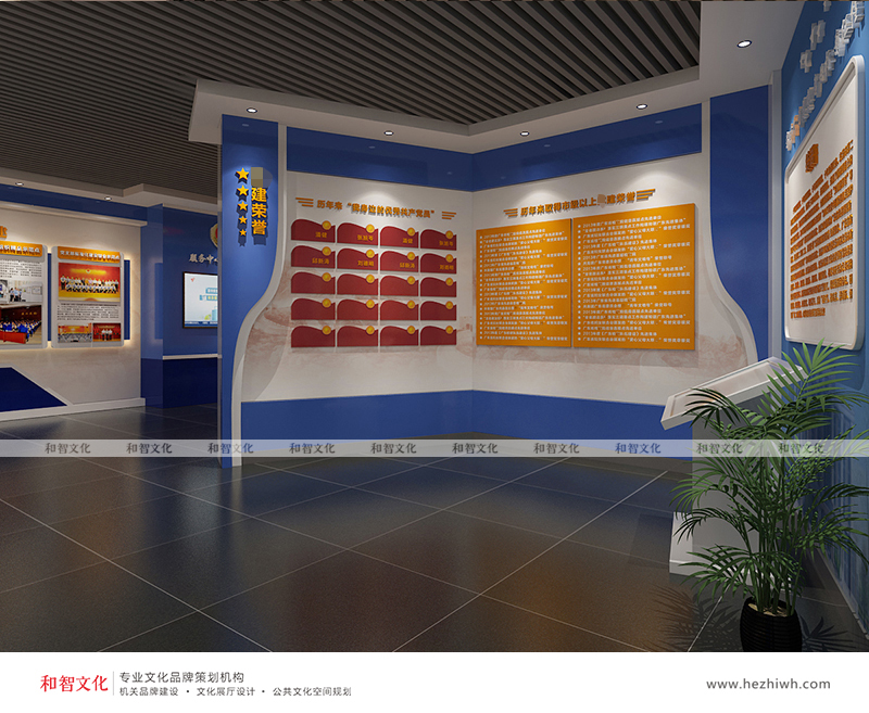 走廊边的文化展板,注重与实际工作的联系,墙面以渐进的方式展示检察院的工作,整体风格淡雅简洁,不增添过多装饰,将空间焦点集中在展板上,为参观者提供良好的阅读体验。